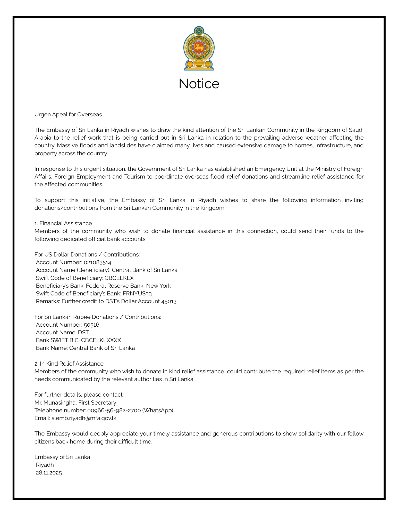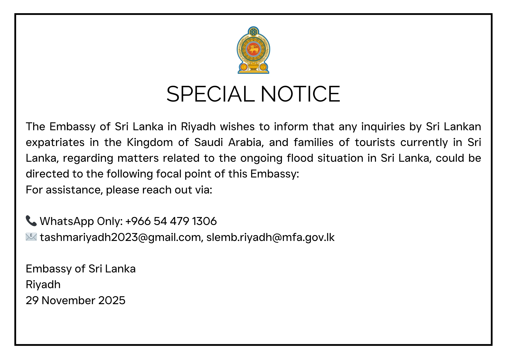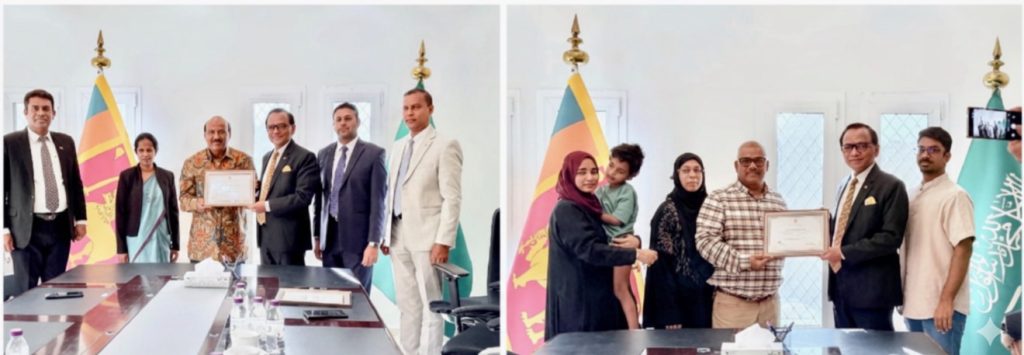 Sri Lanka Embassy in Riyadh Felicitates two long-served migrant workers in Saudi Arabia