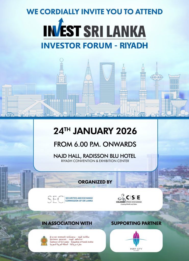 INVITATION to “Invest Sri Lanka” Investor Forum Riyadh