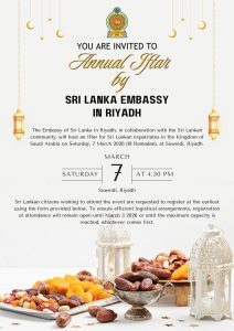 The Sri Lankan Embassy is delighted to invite you to the Annual Iftar Gathering 2026