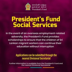 Provision of Educational Assistance from the President’s Fund for Students in Sri Lanka Belonging to Families of Migrant Workers Abroad, in instances where such Workers Encounter Unexpected Adversaries (Death, Accidents, Imprisonment, or Disappearance) October 3, 2025