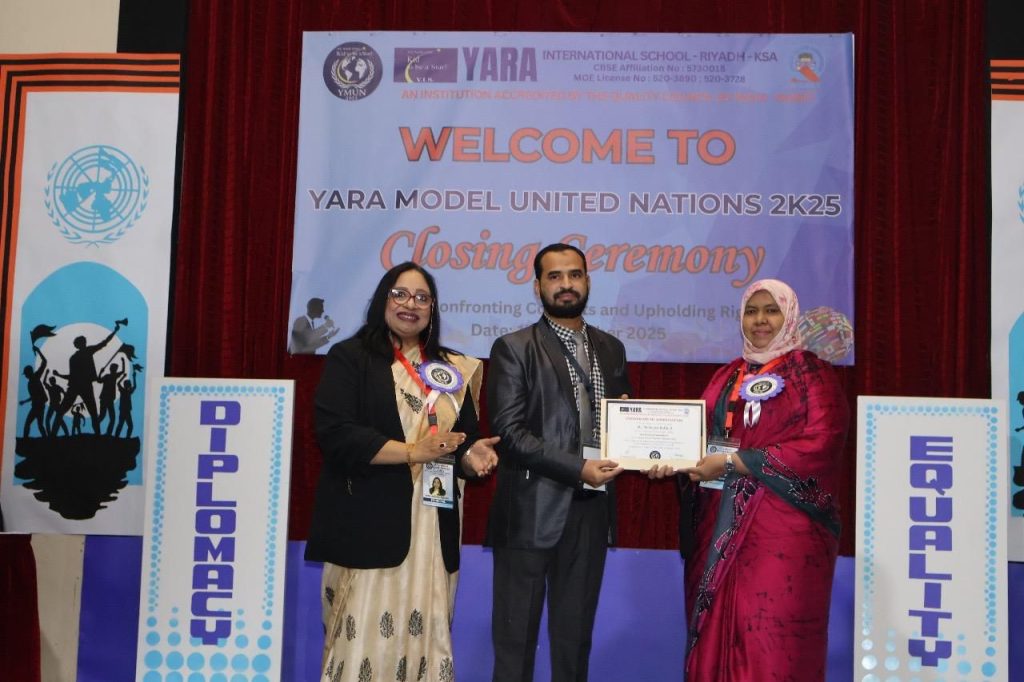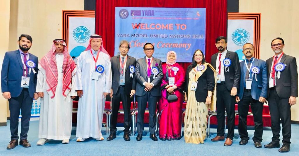 Addressing the gathering Ambassador Ameer Ajwad commended Yara International School for providing such an exemplary opportunity which provides an excellent platform for young students to understand global issues, multilateral diplomacy, international cooperation, and to engage in collective decision making exercise. He also emphasized the importance of promoting moral obligation in the implementation of international laws. Ambassador congratulated the student delegates on their intellectual engagement and enthusiasm as well as the academic staff of the school for organizing such a well-structured and impactful event.