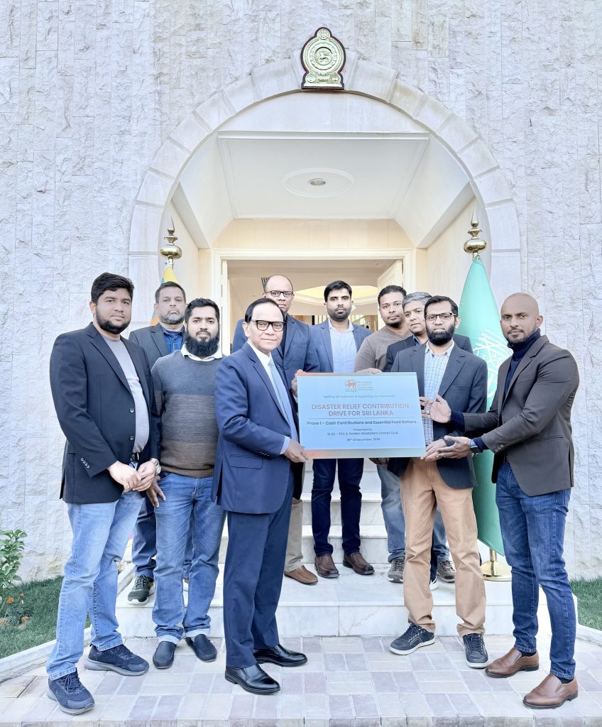 Expressing his sincere appreciation, Ambassador Ameer Ajwad commended SLQS-KSA, including members of the QS Cricket Club (Golden Gladiators), for their exemplary collective effort, reflecting a strong sense of social responsibility and solidarity with the victims of this natural calamity. The Ambassador conveyed his gratitude to each and every member for rising to the occasion at this critical hour in support of national relief and recovery efforts. The contribution by SLQS-KSA underscores the continued commitment of Sri Lankan professionals in the Kingdom of Saudi Arabia to humanitarian causes and nation-building initiatives.