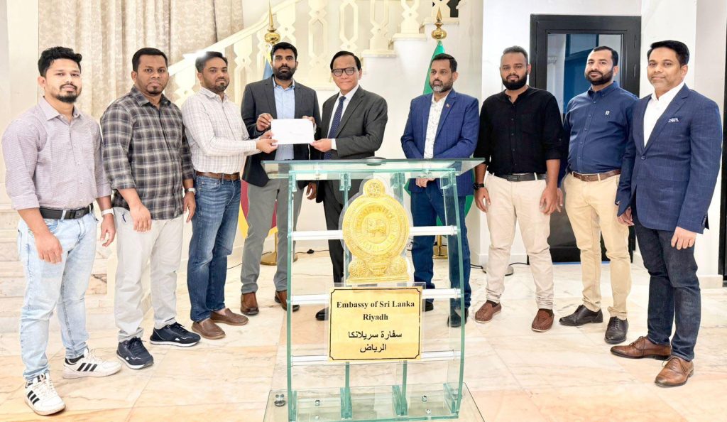 The Sri Lankan community from Kalmunai–Sainthamaruthu, based in Riyadh, contributed LKR one million in support of the post-Ditwah national relief