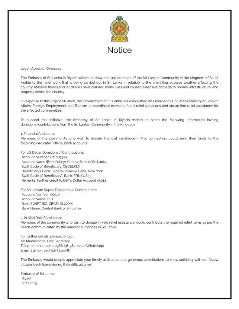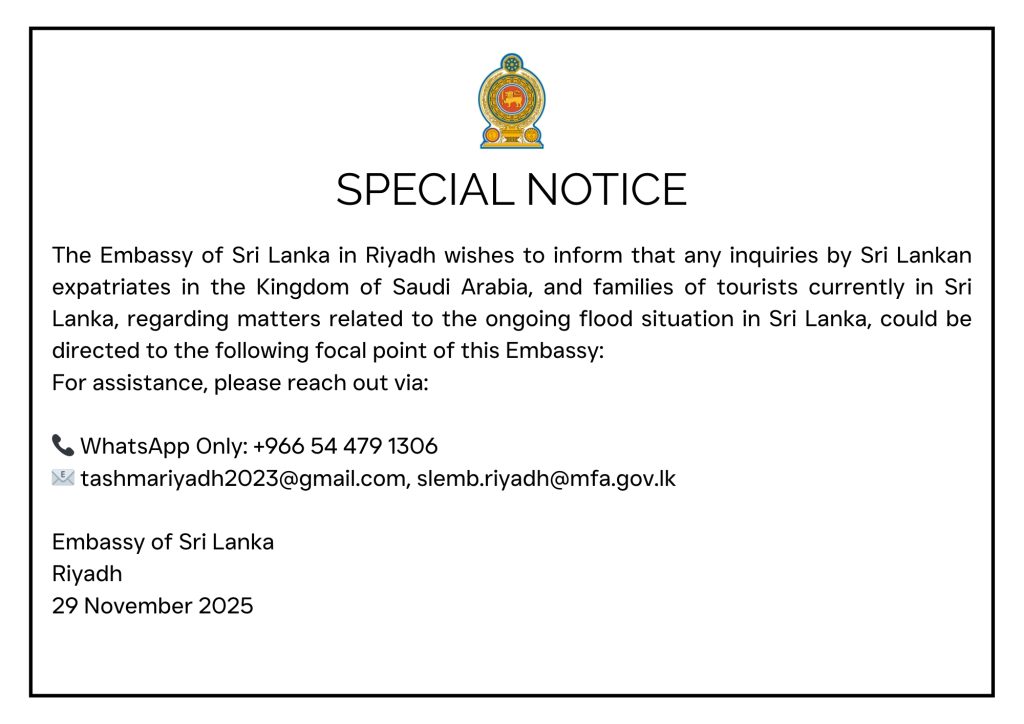The Embassy of Sri Lanka in Riyadh wishes to draw the kind attention of the Sri Lankan Community in the