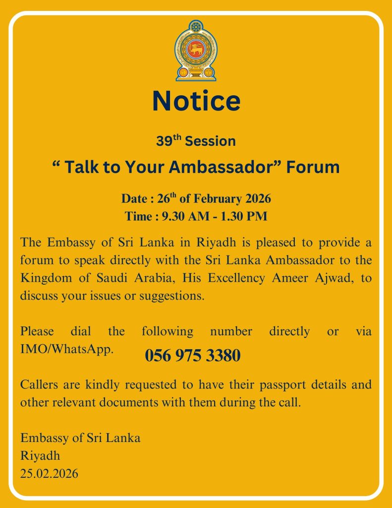 In addition to the Embassy of Sri Lanka in Riyadh and Sri Lankan International School Riyadh (SLISR), Flood Relief items